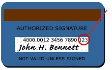 A three digit non-embossed number on the back of the card printed within the signature panel after the account number.